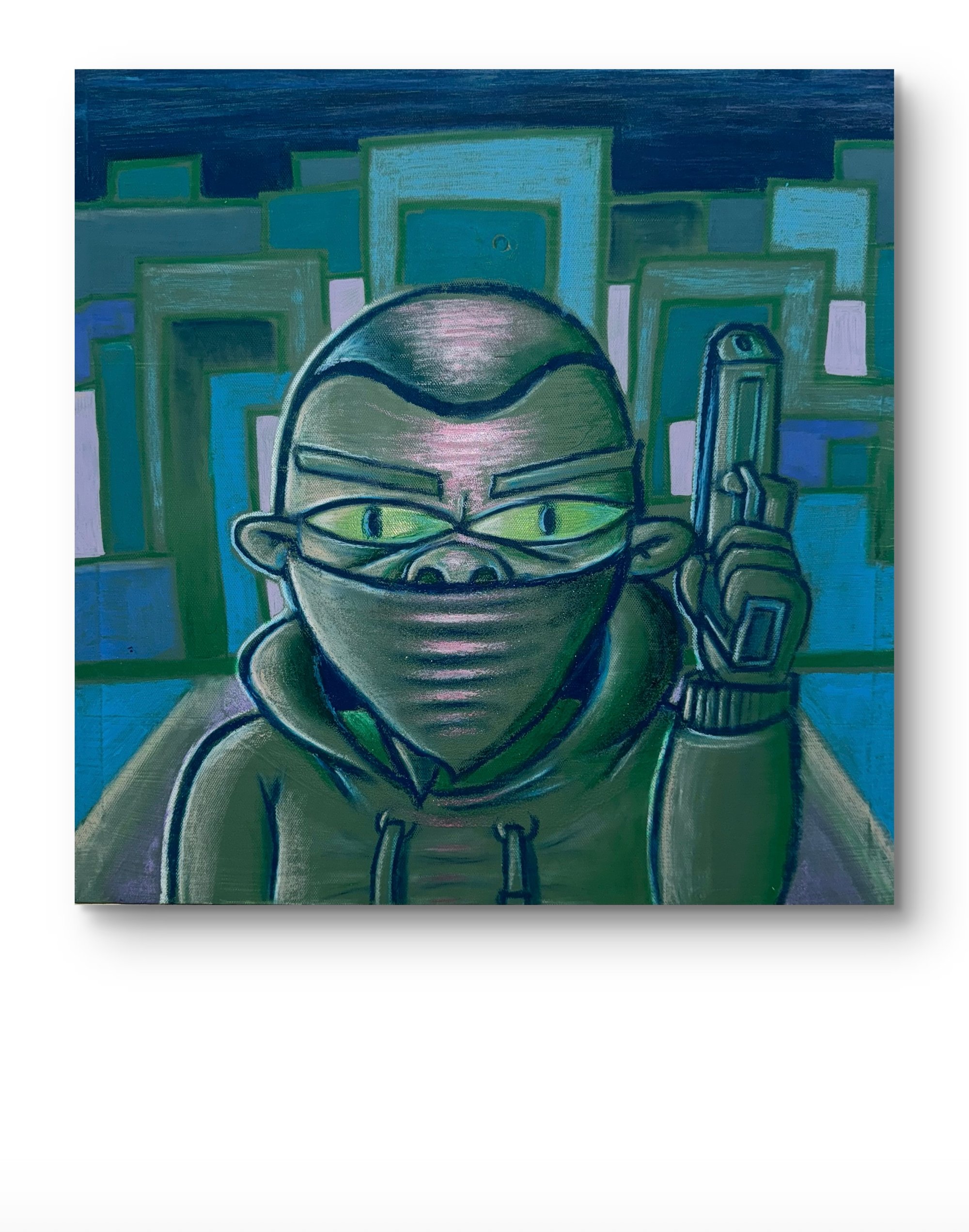 Oil pastel and acrylic paint on stretched canvas